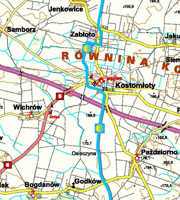 Jedną z atrakcji turystyczno-rekreacyjnych gminy Kostomłoty, która świetnie nadaje się do aktywnego wypoczynku, jest Szlak Świętego Jakuba. Rozpoczyna się on na szczycie góry Ślęży i biegnie przez Sobótkę, Mietków, Kostomłoty aż do Środy Śląskiej. Jest integralnym elementem szlaku Via Regia, prowadzącego do Zgorzelca i dalej, przez kraje Europy Zachodniej, do Santiago de Compostela w Hiszpanii. Szlak Świętego Jakuba (zwany Camino de Santiago) to średniowieczny szlak pątniczy prowadzący do katedry w Santiago, gdzie według wierzeń pielgrzymów, złożone zostały szczątki świętego Jakuba Starszego- kuzyna samego Jezusa Chrystusa, brata świętego Jana Ewangelisty, pierwszego biskupa Jerozolimy. Symbolem szlaku Camino de Santiago jest żółta muszla na niebieskim bądź granatowym tle. Właśnie taką muszlę przynosili w dawnych czasach pielgrzymi jako dowód, że osiągnęli swój cel w północnej części hiszpańskiej Galicji. Muszla pozostała do czasów dzisiejszych symbolem pielgrzymowania.
